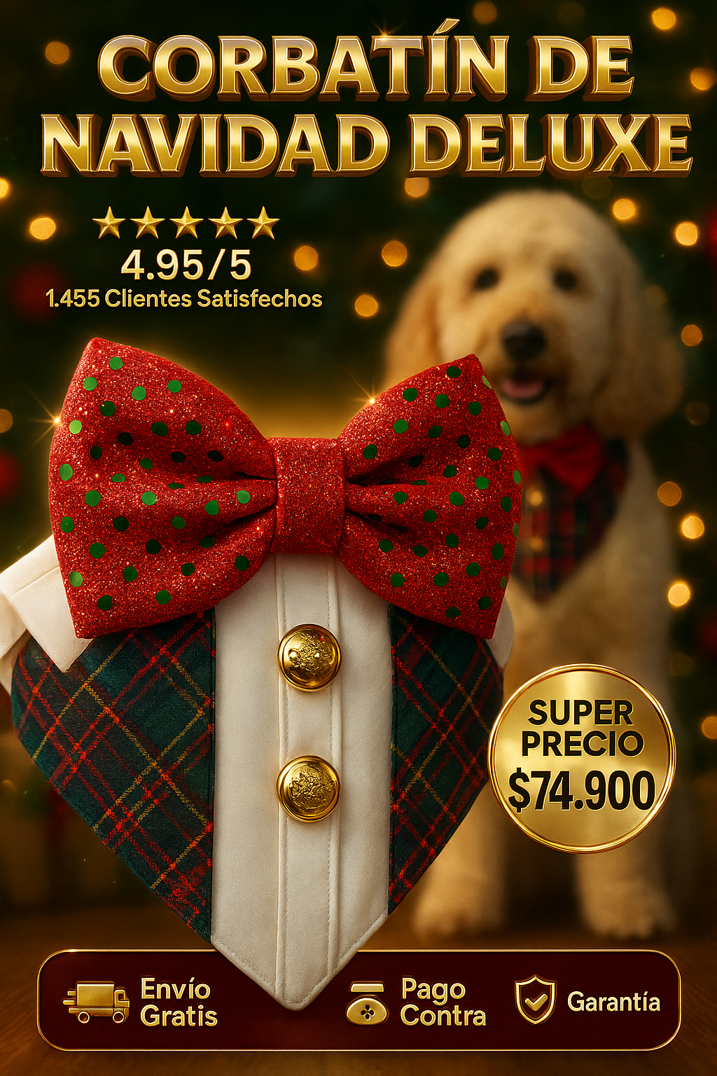 Este corbatín deluxe combina comodidad, estilo y un diseño festivo irresistible. Perfecto para fotos, reuniones y momentos especiales. ¡Tu mascota jamás se verá tan adorable! ❤️🐾